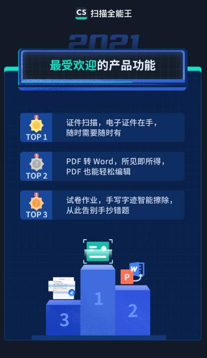 《报告》显示,证件扫描是2021年最受用户欢迎的功能,借助证件、单据、文档扫描及管理,用户可以减少工作中大量的低效时间,比如从事铁路货运的铁路职工,每批过境班列均需要扫描很多留底单据,每次扫描都要2个多小时,经常加班。成为扫描全能王的忠实用户后,原本2小时的扫描仪扫描,最慢半小时就可以搞定,从此很少加班。
