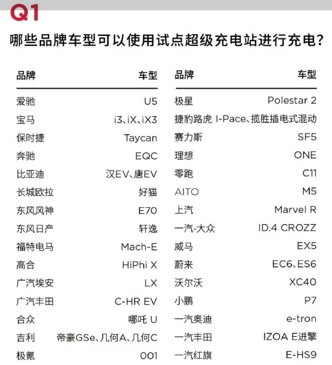 比亚迪、蔚来、极氪、理想、赛力斯等车型都能使用特斯拉的充电桩。