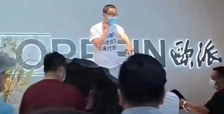 DoNews7月14日消息,据媒体报道称,7月8日下午,广州建博会期间,一名身穿白色上衣的男子在欧派展台前持刀抵住自己的脖子。旁边数名男子劝住其下台未果后,多人持伞上台并将其制服。