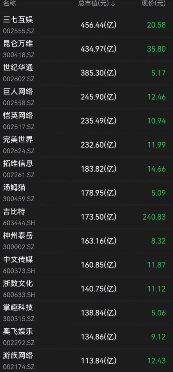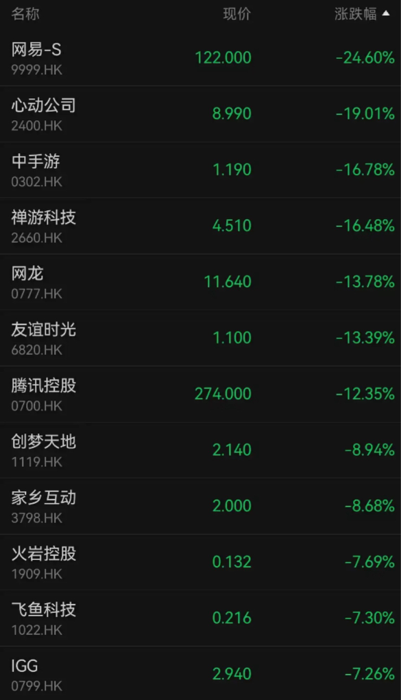 文件一出,游戏板块股价瞬间变成一片绿油油: