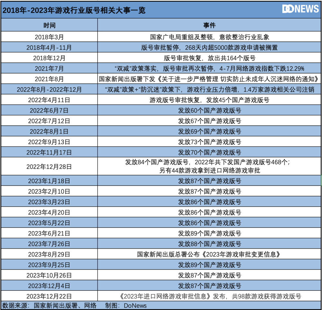 在《办法》下发同一天,国家新闻出版署还发布了《2023年进口网络游戏审批信息》,共98款游戏获得版号,好歹让游戏公司们冬至吃了顿饺子,不过,估计还是抵消不了行业对未来的焦虑。