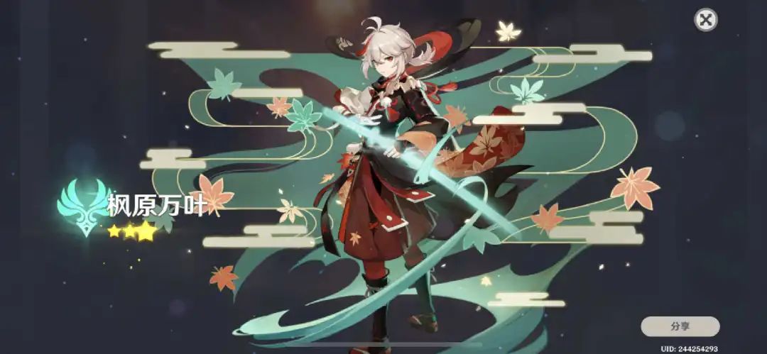 《原神》游戏中的五星角色枫原万叶 图片来源:受访者