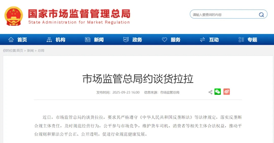 2025年9月23日,货拉拉因涉嫌违反《反垄断法》及相关规范经营要求,被国家市场监督管理总局约谈,要求其维护货车司机和消费者合法权益。这是2025年内第二次被中央级监管机构“敲警钟”。
