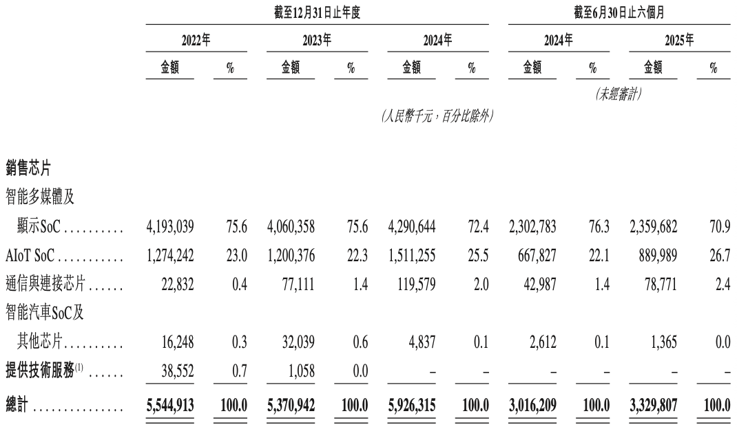 截至2025年6月30日,其芯片累计出货超过10亿颗。2025年上半年相关芯片出货量超过900万颗,其2024年推出的新一代旗舰产品主要面向新兴智能终端市场,采用先进6nm制程,集成新一代Armv9架构和端侧AI计算能力,NPU算力可达32TOPS,提升了其端侧AI算力SoC的市场竞争力。