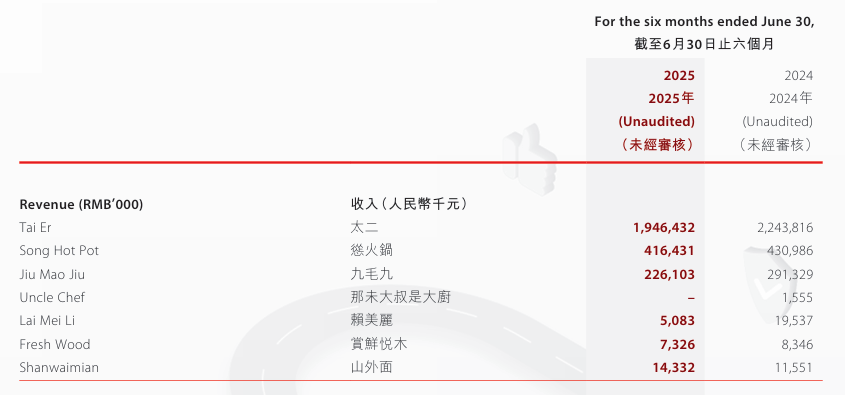 “作为曾经酸菜鱼这一细分市场的排队王,太二酸菜鱼如今几乎不太需要等位。”不仅如此,结合此前母公司九毛九所发布的数据显示,2025年上半年太二酸菜鱼营收19.46亿,同比下滑13.3%;作为营收支柱品牌,连带着母公司的经营状况也不甚理想,过去两年时间公司股价下滑超过80%。
