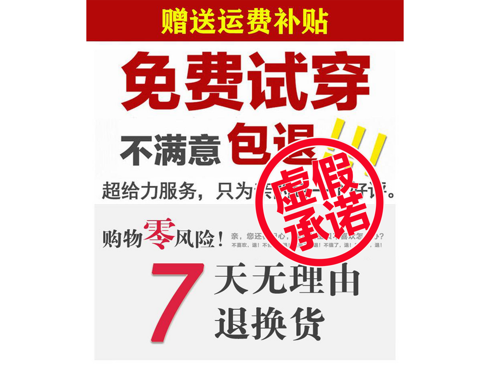 “试用后可退款”、“试穿后可退款”、“不好用退款”、“不好穿退款”、“试穿后可退”、“试用后可退”、“宣传支持免费试穿”、“宣传支持免费试用”、“试用后免费送”、“试穿后免费送”、“送你试穿”、“送你试用”