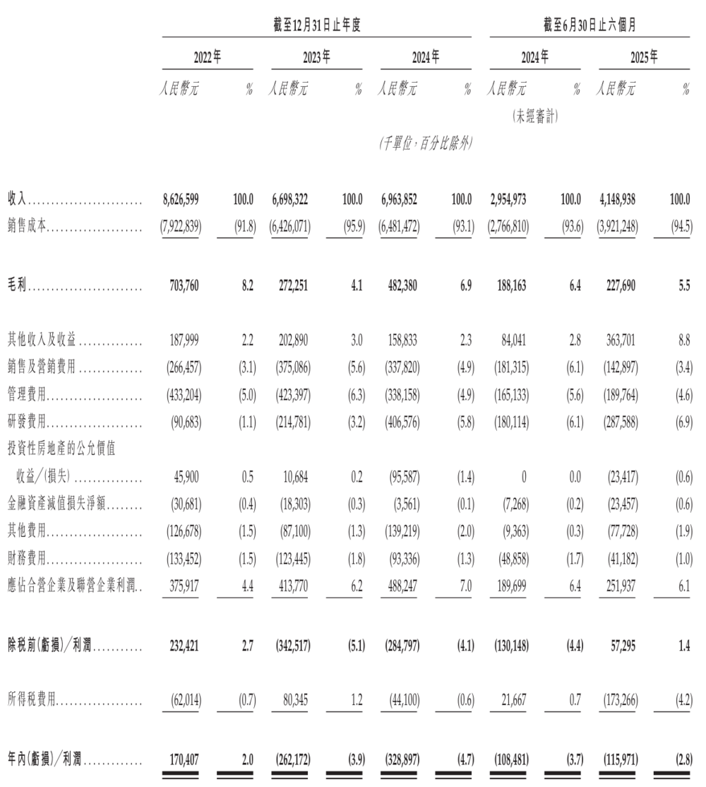 千里科技2022年、2023年、2024年期内利润分别为1.7亿、-2.63亿元、-3.29亿元;期内利润率分别为2%、-3.9%、-4.7%。