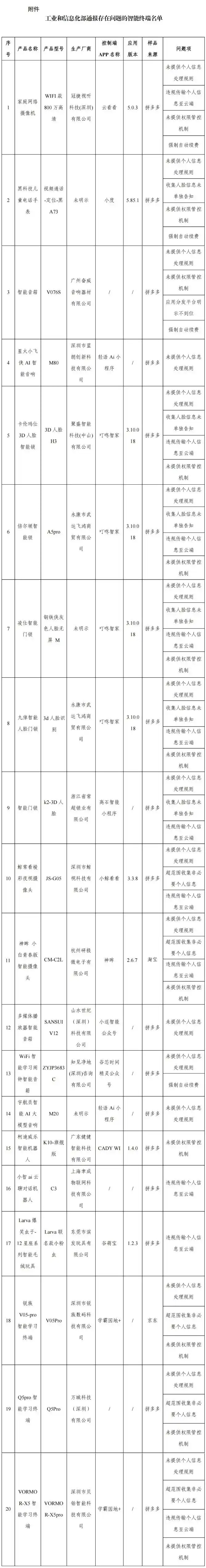 近期,经组织第三方检测机构进行抽查,共发现20款智能终端存在侵害用户权益行为(详见附件),现予以通报。