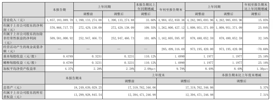DoNews10月27日消息,紫光国微今日公告,2025 年第三季度实现营业收入 18.57 亿元,同比增长 33.60%;归属于上市公司股东的净利润 5.71 亿元,同比增长 109.55%;基本每股收益 0.6789 元。