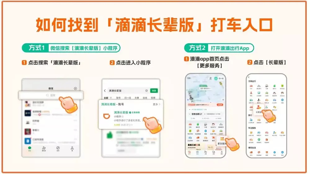 滴滴方面介绍,助老打车团队曾对5000多名老人进行深度访谈,围绕“不会叫车、找不到车、不会支付”等痛点持续优化界面与流程,并在社区、医院等场景布局服务标识与热线电话。没有智能手机的老人可通过拨打400-688-1700人工下单。