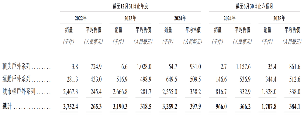 事实上,坦博尔并非没有尝试摆脱“以价换量”模式,比如其城市轻户外系列的平均售价从2023的281.7元上涨到2024年的358.2元,结果导致销量从266.68万件下滑至255.50万件。2025年上半年,坦博尔的平均售价为384.1元,这一价格甚至比其城市轻户外系列699元的最低建议零售价还要低300元左右,意味着其销量主要依赖折扣促销。