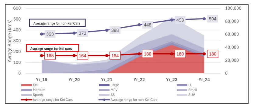 - EV作为日本法规特色车型,凭借其缓解续航焦虑、适应狭窄停车空间的特点,长期占据32%~36%的稳定市场份额,是电动化转型中的重要赛道。