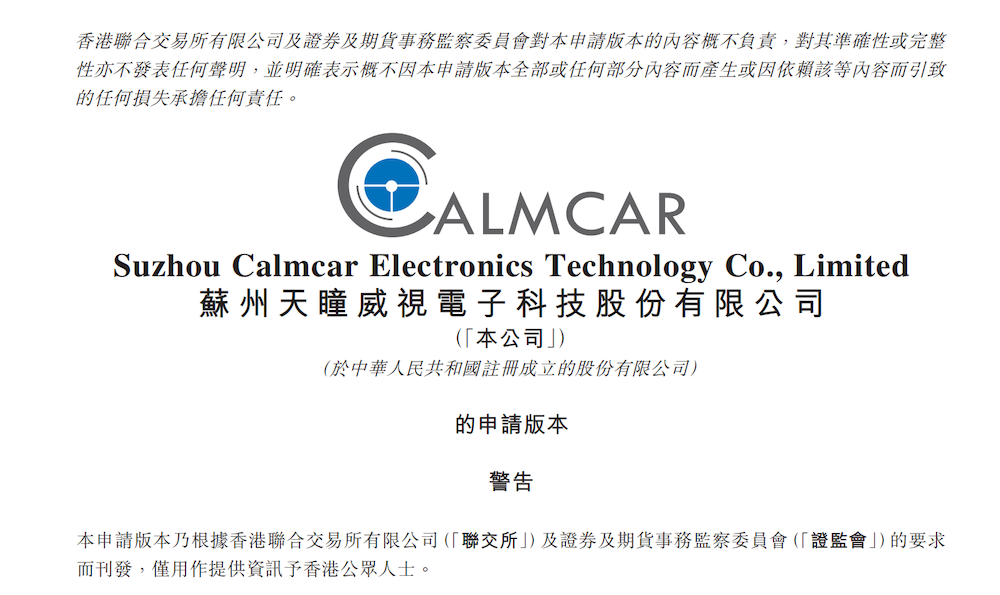 DoNews11月5日消息,日前,据港交所披露,苏州天瞳威视电子科技股份有限公司(以下简称“天瞳威视”)向港交所递交上市申请书。