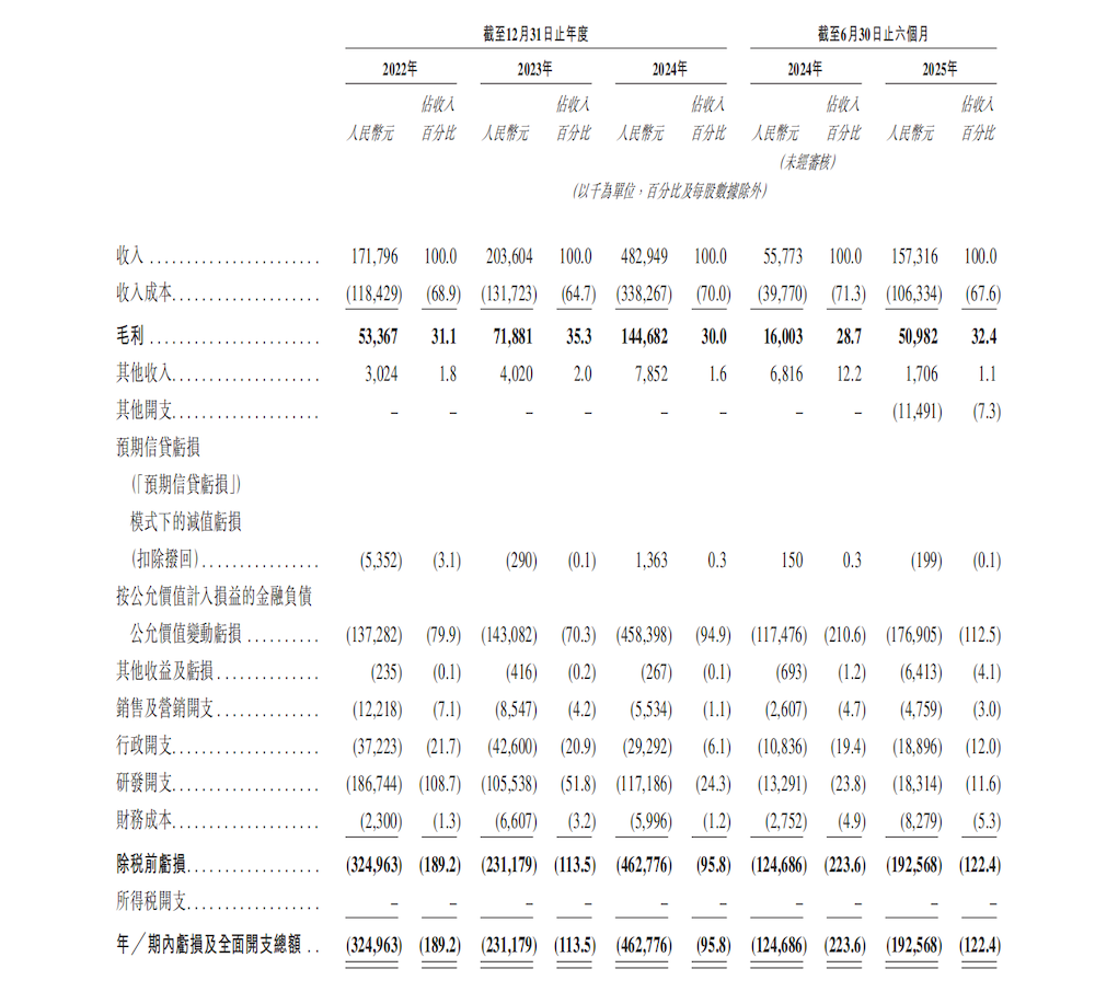 净亏损方面,2022年、2023年、2024年和2025年上半年,天瞳威视的净亏损分别为3.25亿、2.31亿、4.63亿和1.93亿元,三年半累计亏损超12亿元。