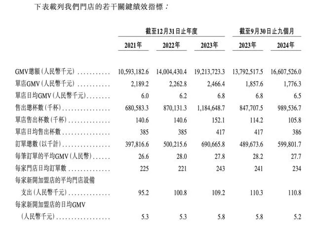 与此同时,加盟商也越来越“不赚钱”了,古茗老加盟店的日均GMV从6900元下降至6600元,同比下降4.4%,新加盟店的日均GMV从5800元下降至5200元,同比下降10.3%。
