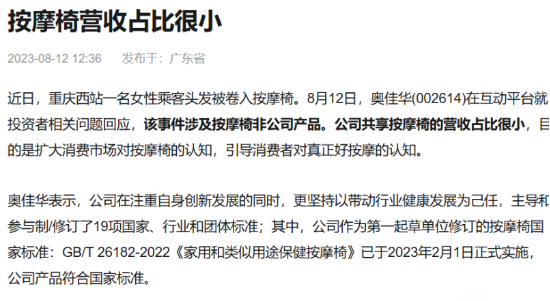奥佳华业绩的波动与按摩椅赛道的变化攸关。