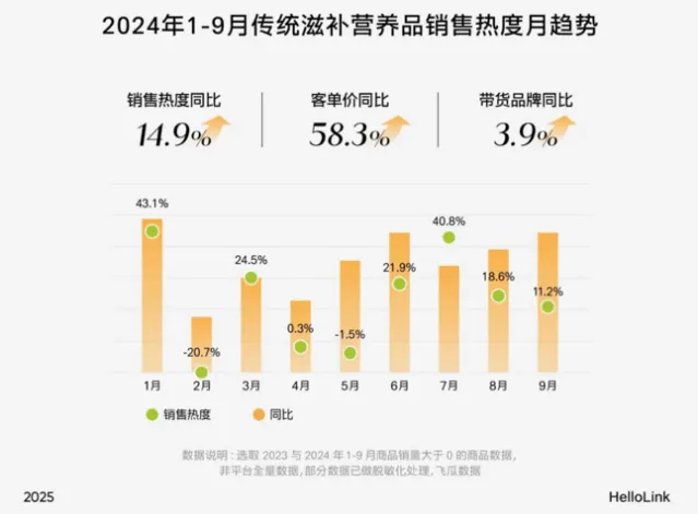 《2024抖音电商滋补营养品行业趋势洞察》显示出,五谷养生营养品,与以燕窝、花胶、参类等为主的美容养颜类与补气血的滋补制品呈高规模高增长;小红书上与“中式养生”关联的笔记数量,也较去年同期增长超300%。与此同时,Z世代成为养生主力。早在2023年药食同源市场规模Z世代的贡献就超过了40%,《Z世代营养消费趋势报告》显示,18-35岁人群占养生消费的83.7%,年均花费超过1000元。这种需求变化催生了即食花胶、鲜炖燕窝等新品类,也为官栈等品牌提供了市场空间。