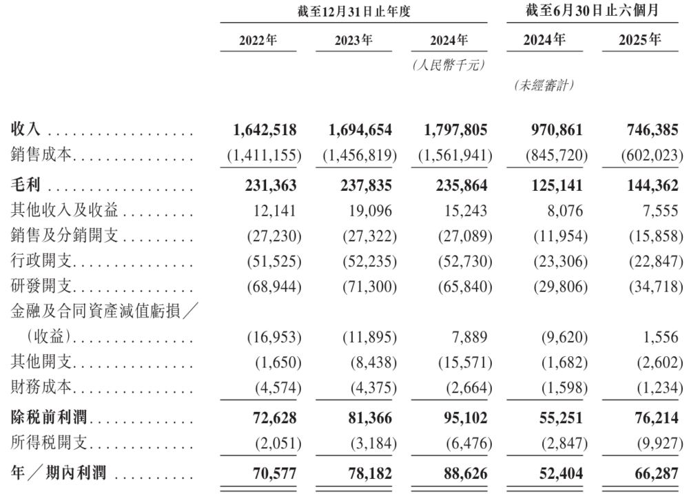 招股书显示,中鼎智能2022年、2023年、2024年营收分别为16.43亿元、16.95亿元、18亿元;毛利分别为2.31亿元、2.38亿元、2.36亿元;年内利润分别为7058万元、7818万元、8863万元。