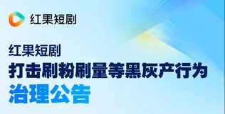 DoNews11月13日消息,红果短剧今日发布打击刷粉刷量等黑灰产行为的治理公告,近期,平台监测到部分账号通过机器刷量、真人众包等方式恶意操控数据,严重干扰社区正常秩序,损害用户利益。