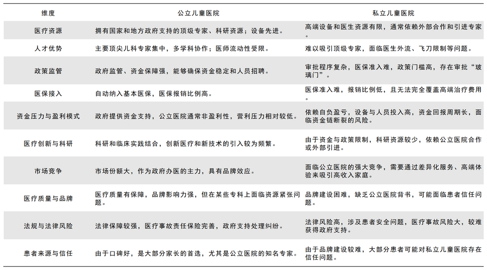 一方面,公立儿童医院通常承担着国家级重点专科建设和科研项目,拥有完善的病例数据积累和科研体系支持。而民营医院由于缺乏高校附属背景,在科研立项、临床试验准入和政策试点方面往往处于劣势。