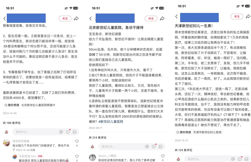 据部分患者家属在社交媒体平台反馈,新世纪医疗在救治能力和服务衔接上仍存差距。有网友称,北京新世纪儿童医院急诊医生态度敷衍,婴儿发烧39度未详细解释病因,误判病情(称可能是幼儿急疹,后证实错误)。
