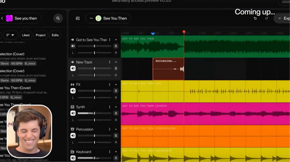 两个月后,Udio又迅速推出可视化编辑工具Sessions,直接填补了AI音乐“难修改”的空白。该工具能自动从音频波形中识别主歌、副歌、桥段等音乐结构,创作者可以在其中移动、扩展或替换歌曲的不同部分。更关键的是,修改后的段落能与原有音乐在调性、节奏上自动适配,避免出现衔接断裂的问题。