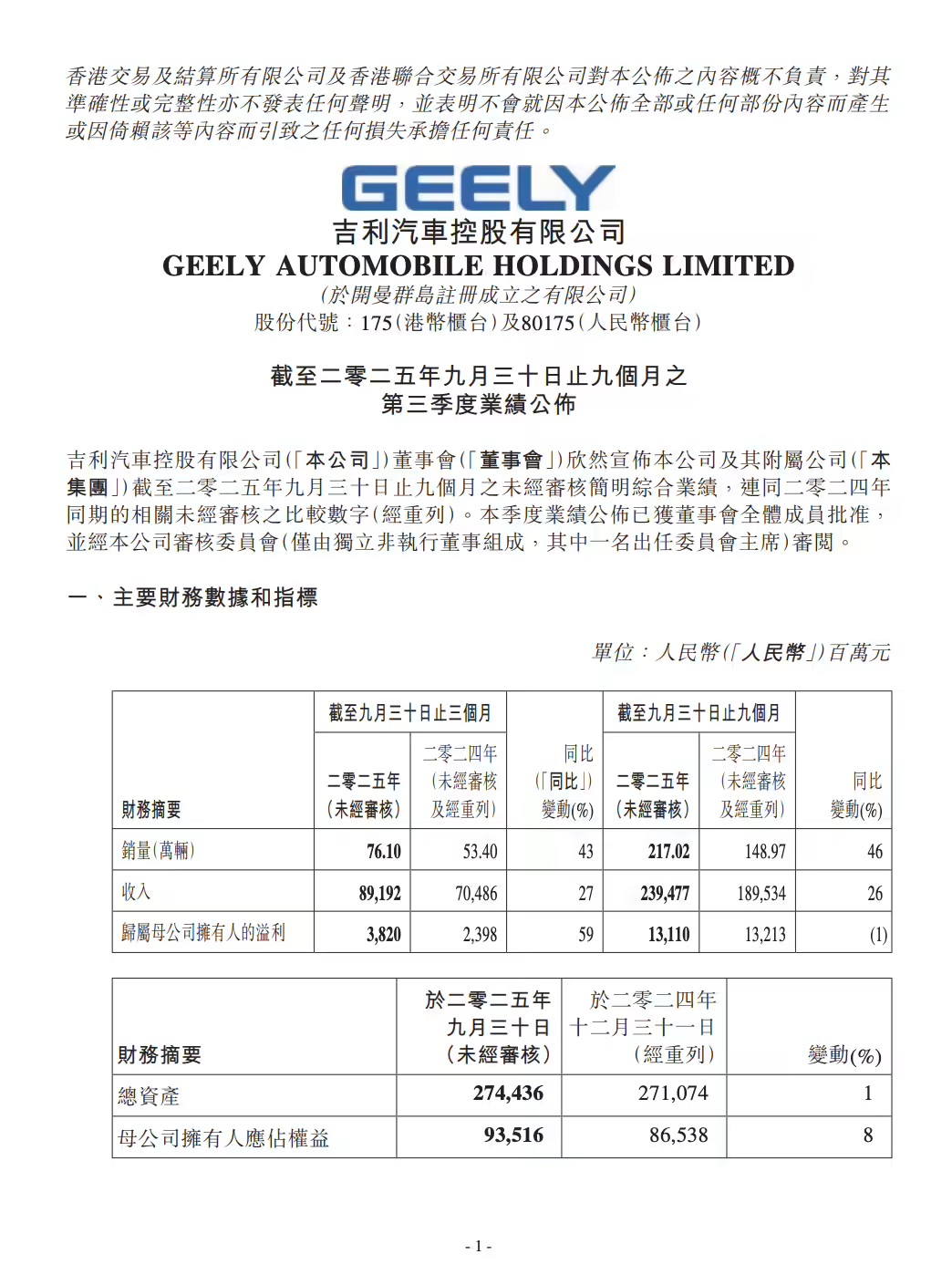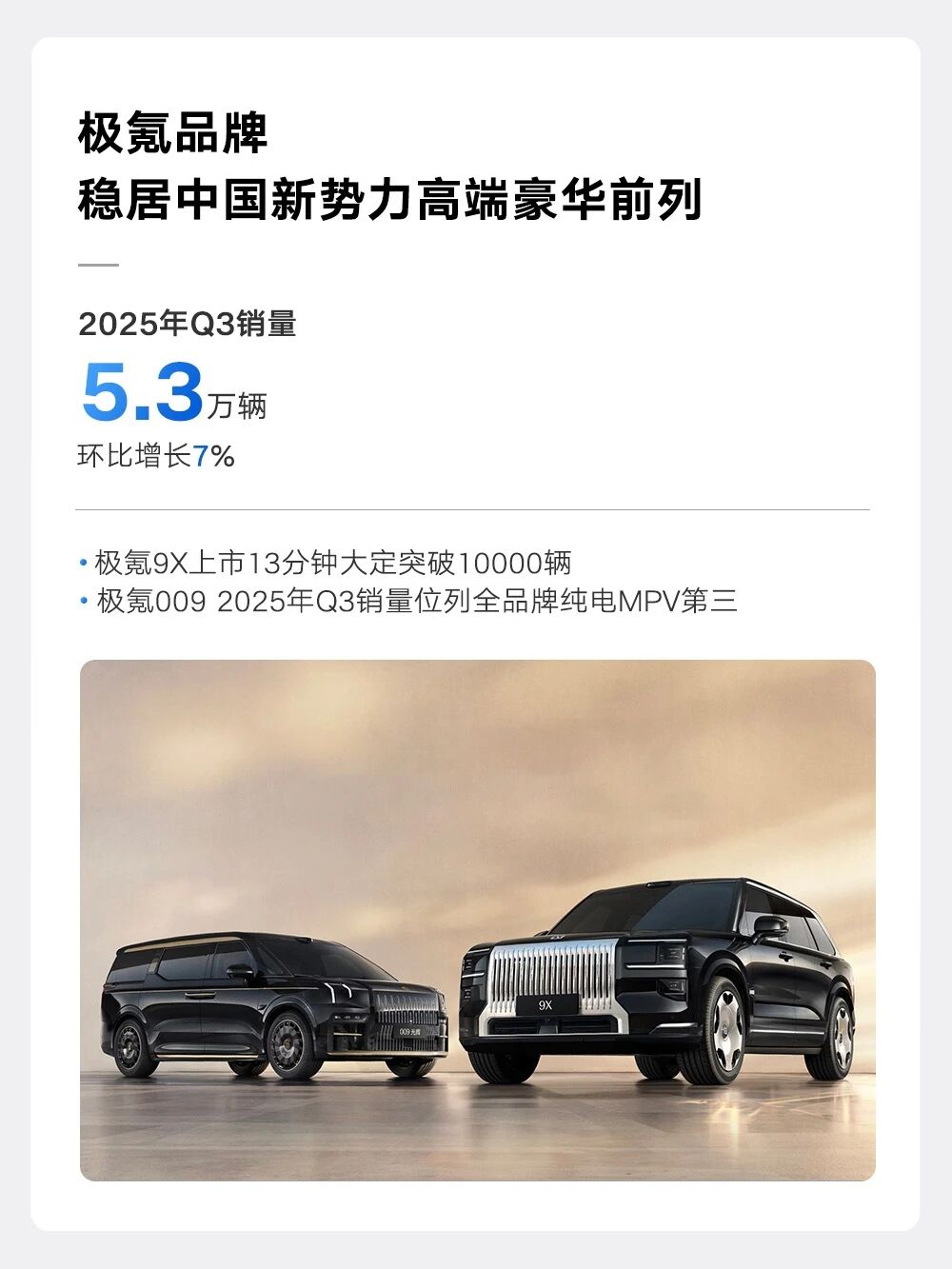 该季度,极氪(吉利汽车控股有限公司之附属公司)整体业绩表现优秀。