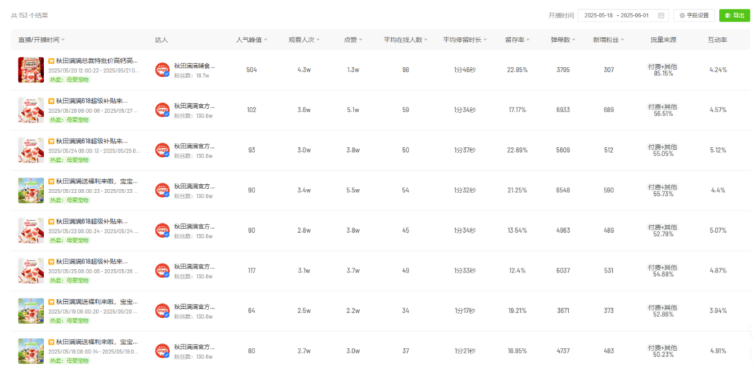从事电商多年的刘峰(化名)则表示,一是以电商起家的秋田满满,需面对电商平台投流成本持续上涨的问题。2024年食品行业零食类目的平均点击成本(CPC)较2023年增长30%,付费流量占比更是高达70%。2025年秋田满满多场直播付费流量占比超50%,部分直播付费流量占比更是超80%。