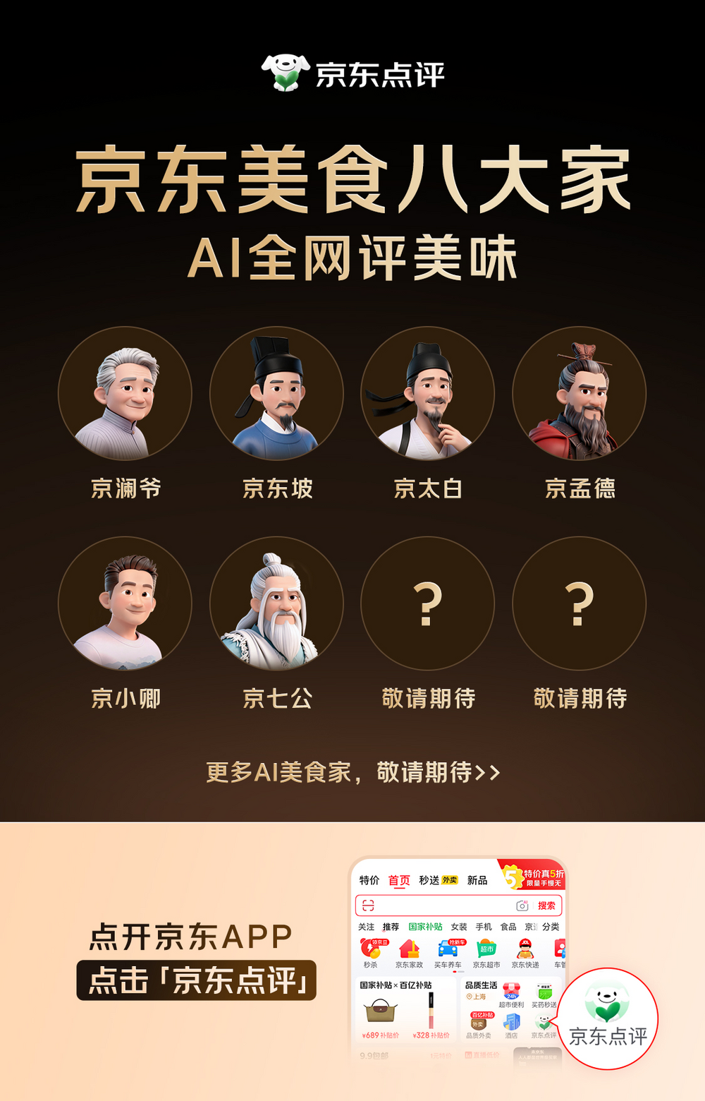 此外,AI全网评还致敬古今知名美食家,构建起“京东美食八大家”虚拟人格,其中六大家已首发上线,两款神秘人格则会根据后续用户投票产生。用户点击进入AI全网评能看到“万人共荐,不说假话”的客观点评,还可根据自己的偏好设置AI评论风格,生成趣味犀利的点评内容。