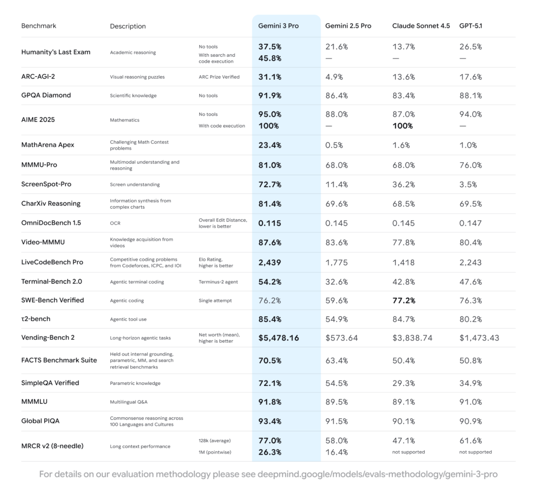 Gemini 3 在一系列关键 AI 基准测试中达到了最先进水平