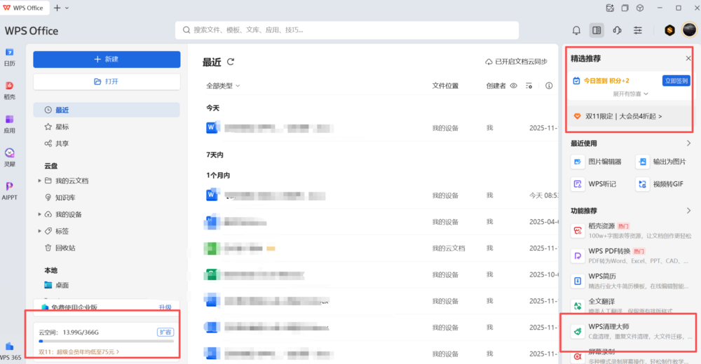 譬如打开美化助手的时候,开学季特惠,会员限时折扣中的广告就很容易让用户反感。在打开WPS的主界面,也能看到很多的广告位,大部分都是售卖会员。此外还存在给WPS工具类产品引流的广告,譬如WPS清理大师,其隐藏在了功能推荐中,其实本质上仍是广告推荐位。