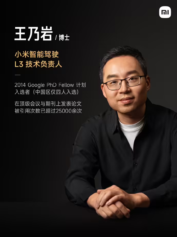 2024年3月,王乃岩从图森未来离职后,于同年5月确认加入小米汽车。他曾多次在顶级会议与期刊上发表论文,被引用次数超25000余次。
