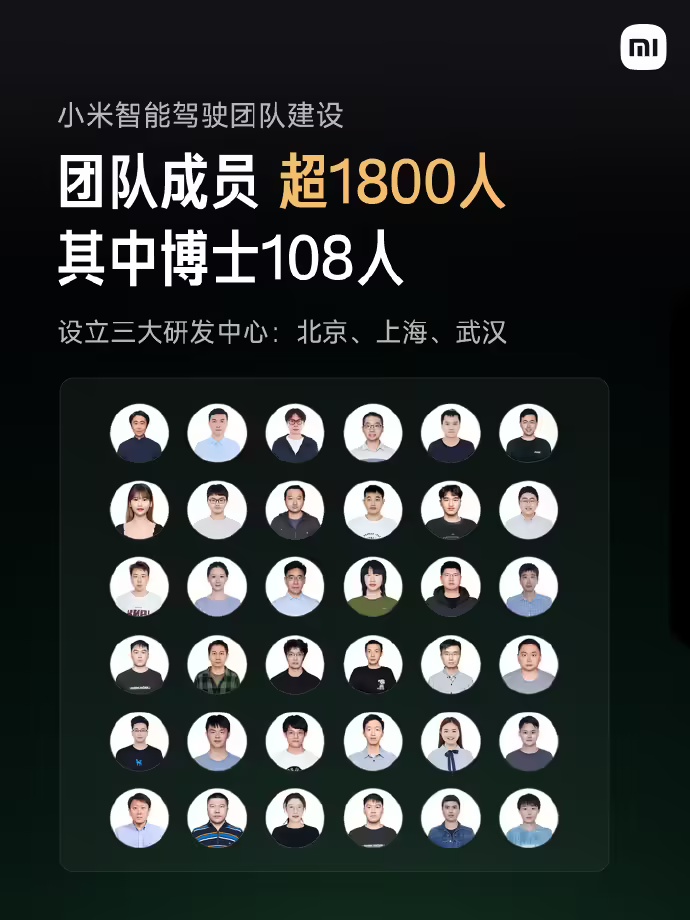DoNews11月21日消息,小米汽车公布了智驾团队的相关情况。目前该团队成员已超1800人,其中博士达108人。小米汽车分别在北京、上海、武汉设立了研发中心。