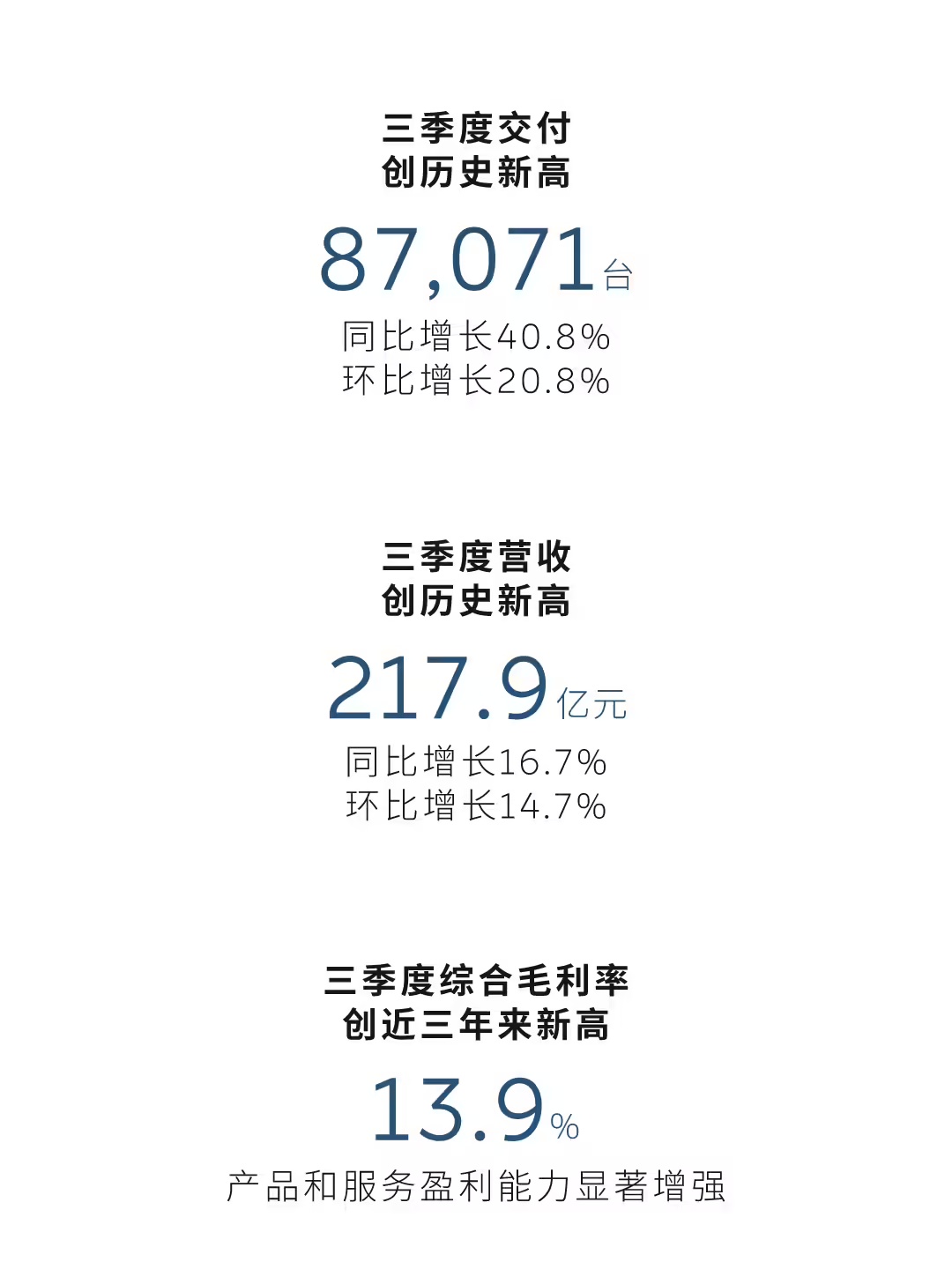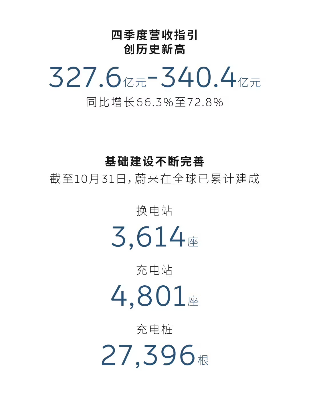四季度交付指引 120,000 台至 125,000 台,同比增长 65.1% 至 72.0%,创历史新高。营收指引 327.6 亿元至 340.4 亿元,同比增长 66.3% 至 72.8%,创历史新高。