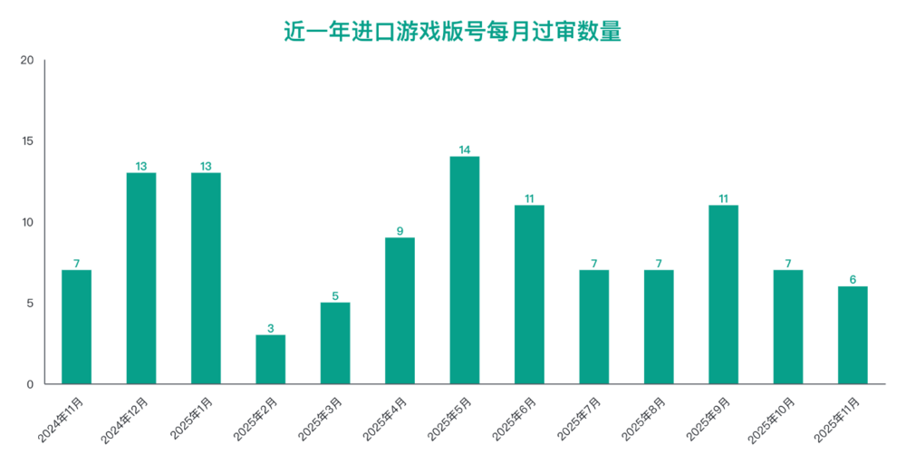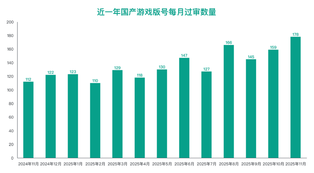 截至今年11月,年内已下发的国产游戏版号共计1532个。值得一提的是,如果从近一年的每月版号下发数量来看,可以发现国产版号的过审数量在阶段性增长,并在今个月创下新高。