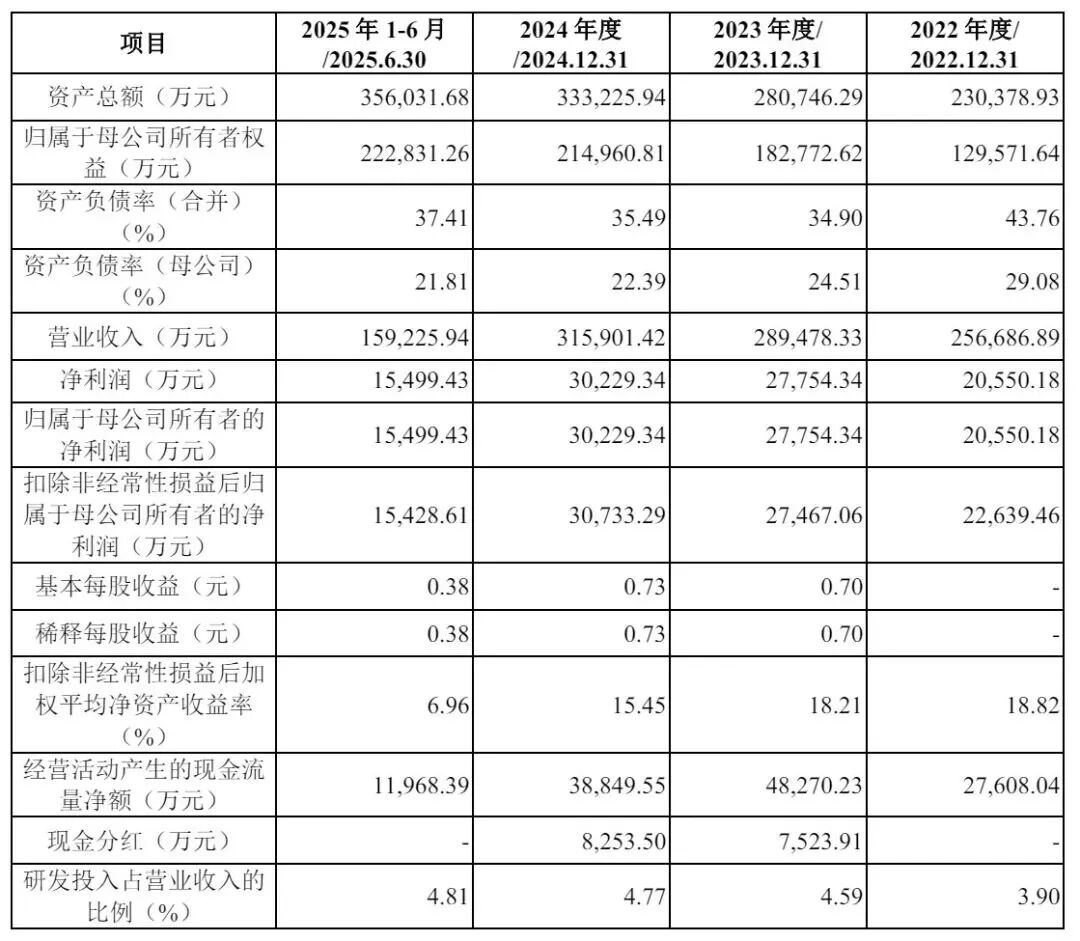 招股书显示,皇冠新材2022年、2023年、2024年营收分别为25.67亿元、28.95亿元、31.59亿元;净利分别为2.06亿、2.78亿元、3亿元;扣非后净利分别为2.26亿元、2.75亿元、3.07亿元。