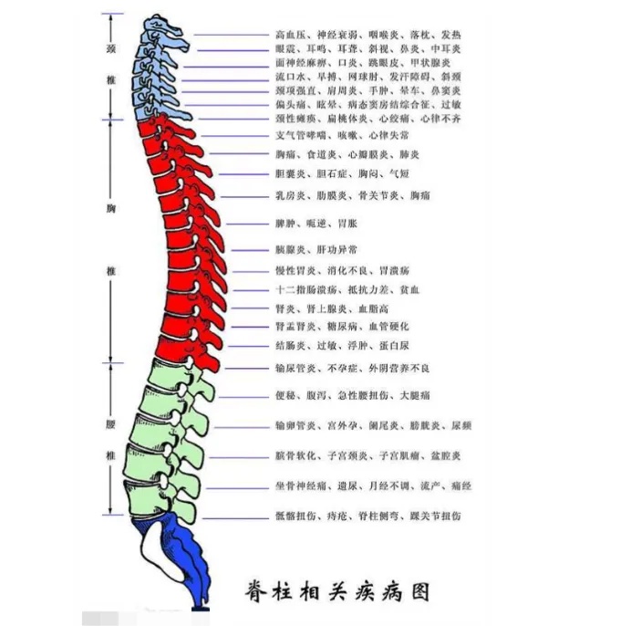 红松小课同样布局了八段锦课程,兴趣岛的问题与其潜在风险高度相似,无疑为红松小课敲响警钟。兴趣岛八段锦学习群中,老师在群内始终暗藏这样的暗示:只要学习八段锦、太极相关课程,就能“包治百病”。例如,群内老师分享的脊柱相关疾病图中,从高血压、心脏病、胆结石到胃溃疡、糖尿病等各种疾病,仿佛脊柱的每一处异常都对应着一种或多种疾病,这无疑在传递“脊柱异常是各种疾病的根源,调整脊柱就能治好百病”的错误观念。