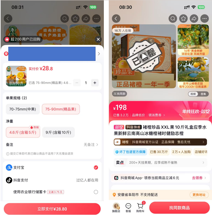 这种模式同样被复制到褚橙市场。胡杨透露,2025年11月,他联系到云南代发褚橙的供应商,对方不仅能提供与褚橙官方旗舰店完全一致的包装,10斤装珍品级“褚橙”报价仅120元——而褚橙官方旗舰店同款产品售价为198元,高额利润空间可想而知。虽因前往哀牢山直播不便,胡杨暂以团购方式销售。但他直言:“重赏之下必有勇夫,高利润必然会让部分商家铤而走险。”