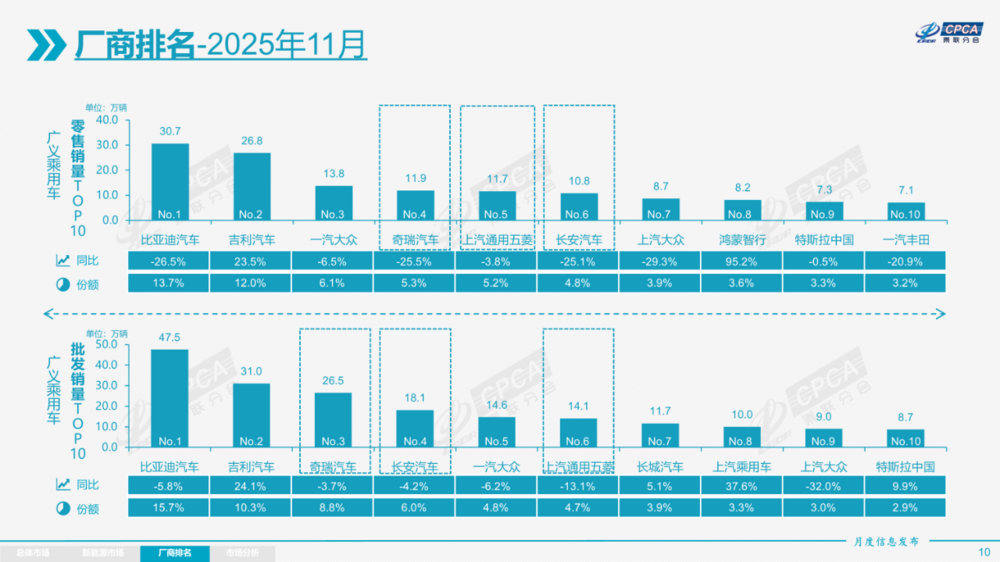 11 月燃油车国内零售同比下降 22%;纯电动市场零售同比增长 9.2%,增程同比下降 4.3%,插混同比下降 2.8%,新势力中的纯电动与增程的结构占比,从去年 11 月的 57%:43% 变为 73%:27%;