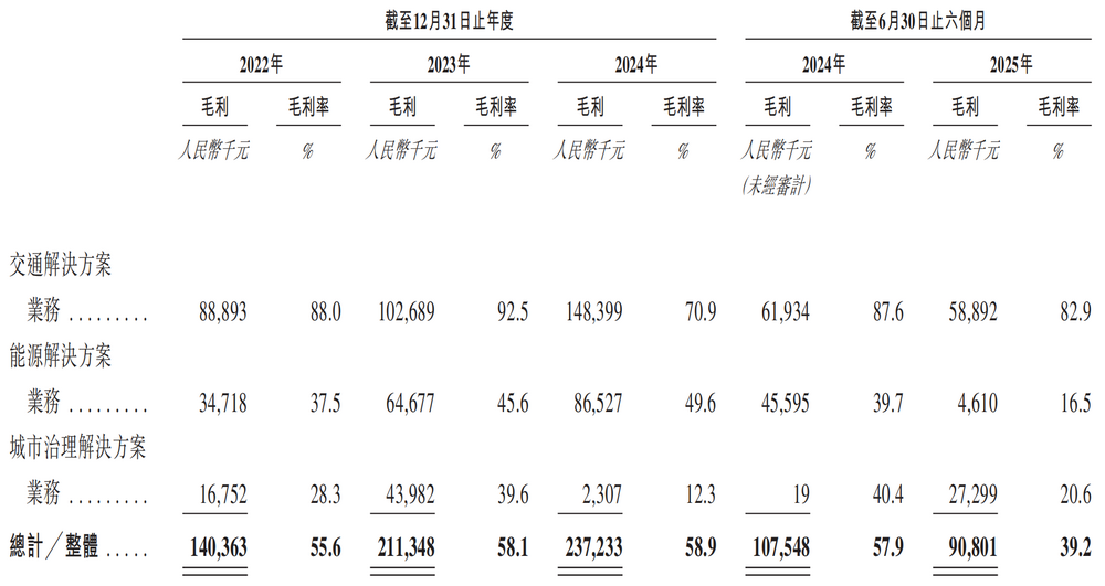 相比之下,诺比侃的低毛利率业务迎来了爆发式扩张。2022年至2025年上半年,城市治理解决方案业务收入占比由23.4%飙升至57.3%,直接从第三大业务晋升为第一大业务,而业务毛利率却由28.3%降至20.6%。
