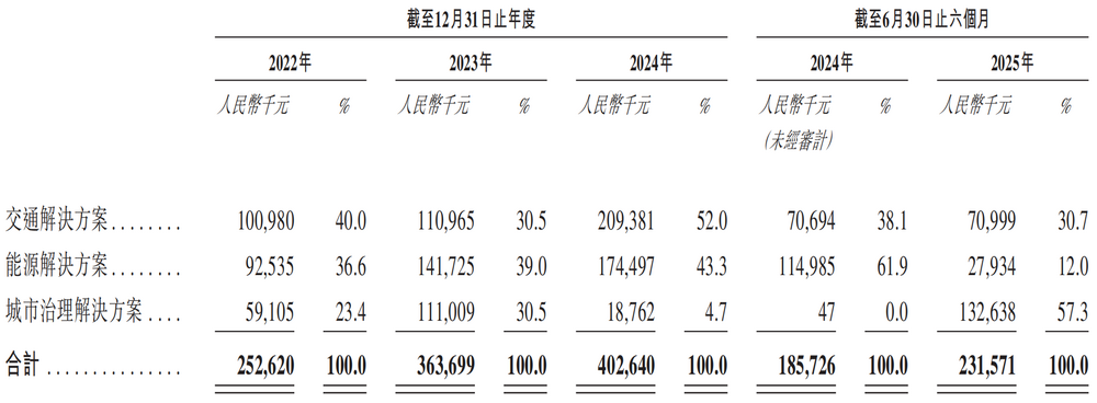 按照业务线划分,诺比侃共有交通解决方案、能源解决方案、城市治理解决方案三条业务线。其中,交通解决方案业务是诺比侃的传统优势业务,也曾是其第一大业务。2022年至2024年及2025年上半年,该业务毛利率分别为88.0%、92.5%、70.9%和82.9%,最高值较同期综合毛利率高出40多个百分点。然而,交通解决方案业务的收入占比由2022年的40.0%最终下滑至2025年上半年的30.7%,未能承担起创收主力军的角色。