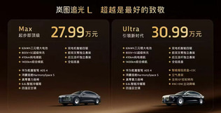 岚图追光 L 豪华轿车 12 月 10 日晚正式上市,新车提供两种不同配置,售价区间为 27.99 万-30.99 万元。