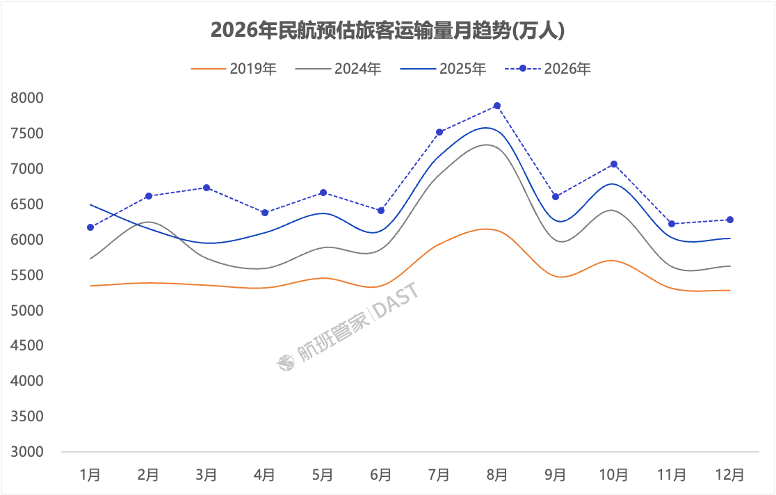 展望2026年,我国民航进入自然增长状态,国内国际皆稳步增长,预测2026年民航全年旅客运输量达8.05亿人次,同比2025年增长4.6%,同比2019年增长22.1%。