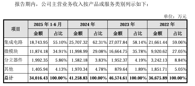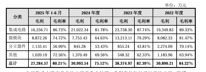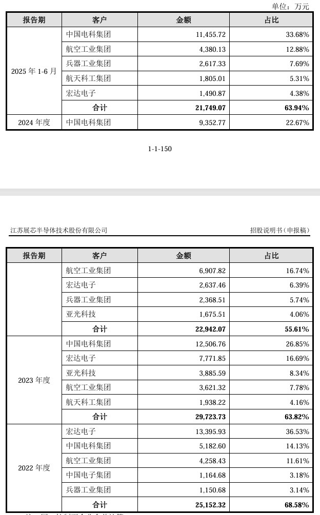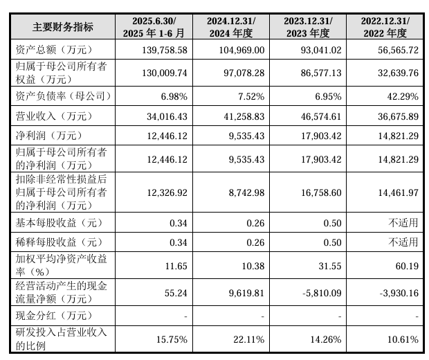 报告期内(2022年至2025年二季度),江苏展芯的营业收入分别为3.67亿元、4.66亿元、4.13亿元、3.4亿元;净利润分别为1.48亿元、1.79亿元、9535.43万元、1.24亿元。