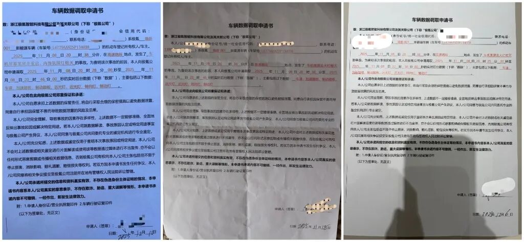 根据周女士提供的聊天记录,极氪工作人员对行车记录仪视频丢失的解释为:车辆系统版本较低,AIS crash导致DVR视频录制异常。周女士称,事发后她多次要求门店提供相关数据,并先后三次签署车辆数据调取申请书,但至今未拿到任何书面数据报告。她曾要求退车退款,但被以车辆故障仅系软件问题拒绝。