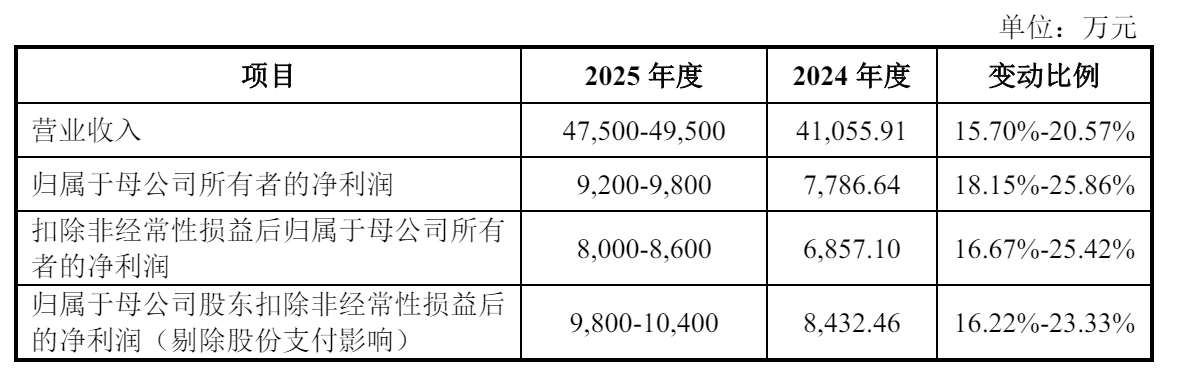 优迅股份预计2025年营收为4.75亿到4.95亿,较上年同期的4.1亿增长15.70%到20.57%;预计净利为9200万到9800万元,较上年同期的7786.6万元增长18.15%到25.86%;预计扣非后净利为8000万元到8600万元,较上年同期的6857万元增长16.67%到25.42%。