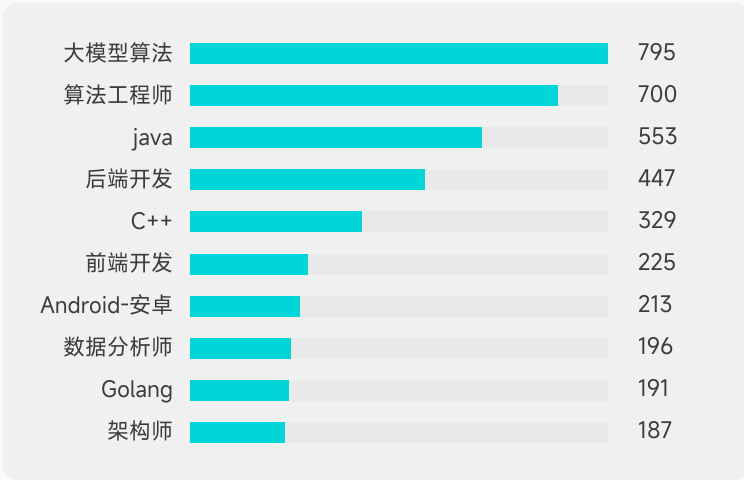 但在“AI领域”,景象又有所不同。报告中,自2025年2月起,AI岗位数量持续快速增长,并在9月达到了峰值,同比增长了11倍。其中,AI产品经理的岗位增幅达到369.36%,大模型算法的岗位增幅达到248.65%,机器人算法的岗位增幅为211.94%,数据标注/AI训练师的岗位增幅为171.35%。