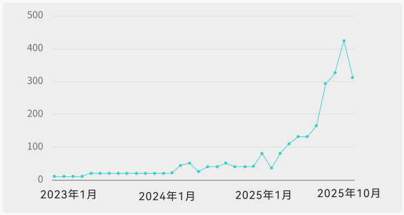 2023年1月-2025年10月新发AI岗位数量月度变化