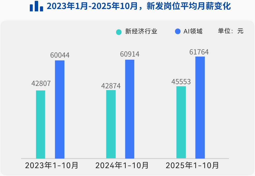 而在脉脉的报告中,新经济行业“人才”的平均月薪就有45553元。普通人9个月,各种收入加一起,不如他们1个月的纯工资收入,AI领域的新发岗位平均月薪更是高达61764元,1个月足以抵上普通人干1年。