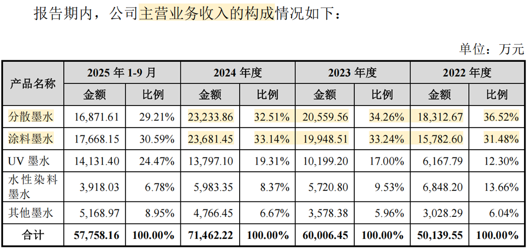 墨库股份的主营业务为数码喷印墨水的研发、生产与销售,主要产品包括分散墨水、涂料墨水、UV墨水、水性染料墨水等。2024年度,公司实现营业收入7.27亿元,扣非后归母净利润1.42亿元。公司为国家专精特新重点“小巨人”企业,是中国领先的数码喷印墨水制造供应商。